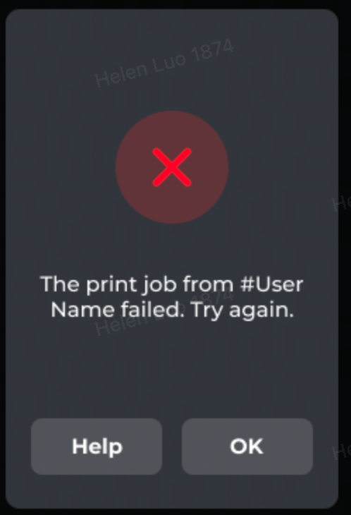When the M5 receives a print job initiated by the app or PC, the first image is displayed. If the second error message indicating that the print job failed to start appears, there may be several possible reasons: