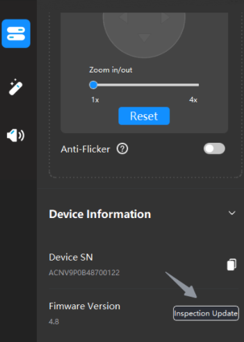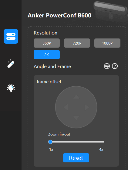 - AnkerWork software has a customized zoom feature. In order to use the zoom in/out feature, go to Device > Angle and Frame > Switch. In doing so, you can use this function and customize FoV settings based on your preferences.