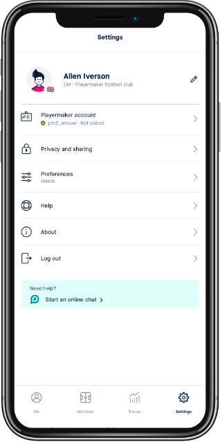 - Open your Playermaker 2.0 app.