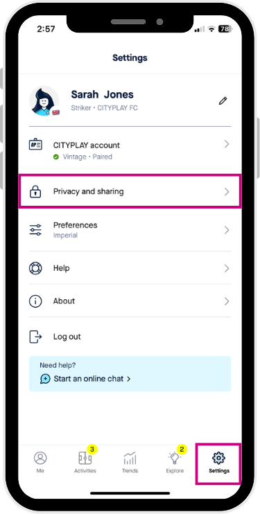 - Click on ‘Privacy and sharing’.