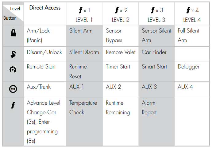 - For example - If you wish to enable valet mode remotely, all you have to do is press the function button twice, and then within 3 seconds, press the unlock button.